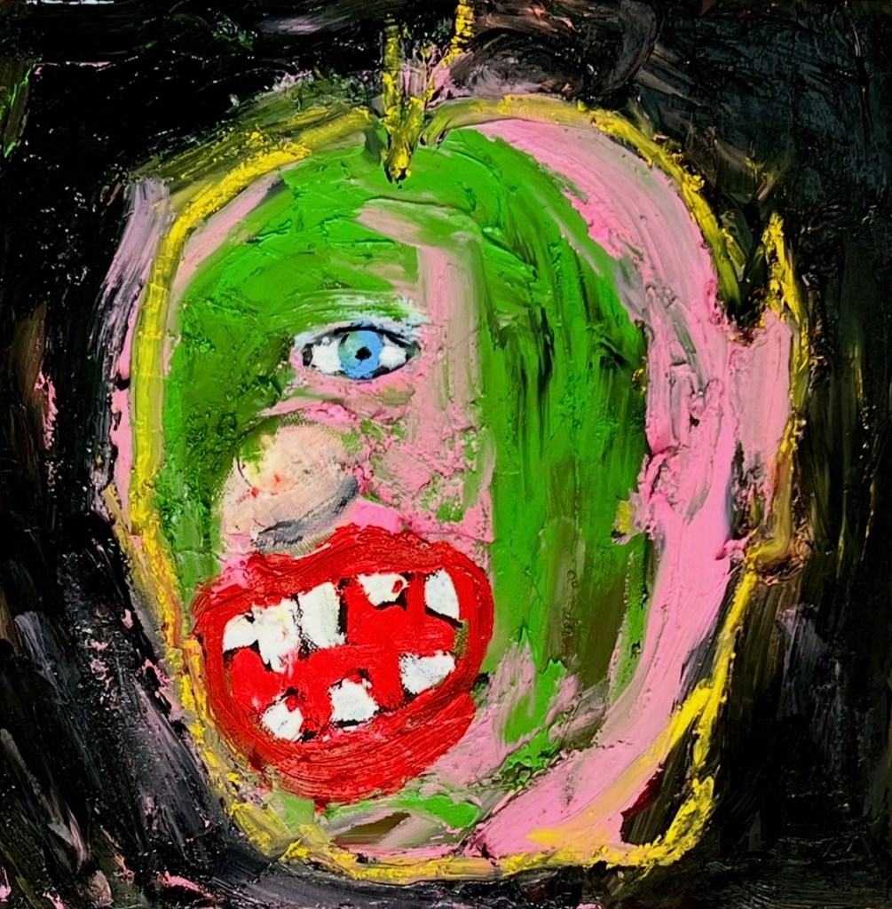 Acrylic, spray paint, pastel on canvas