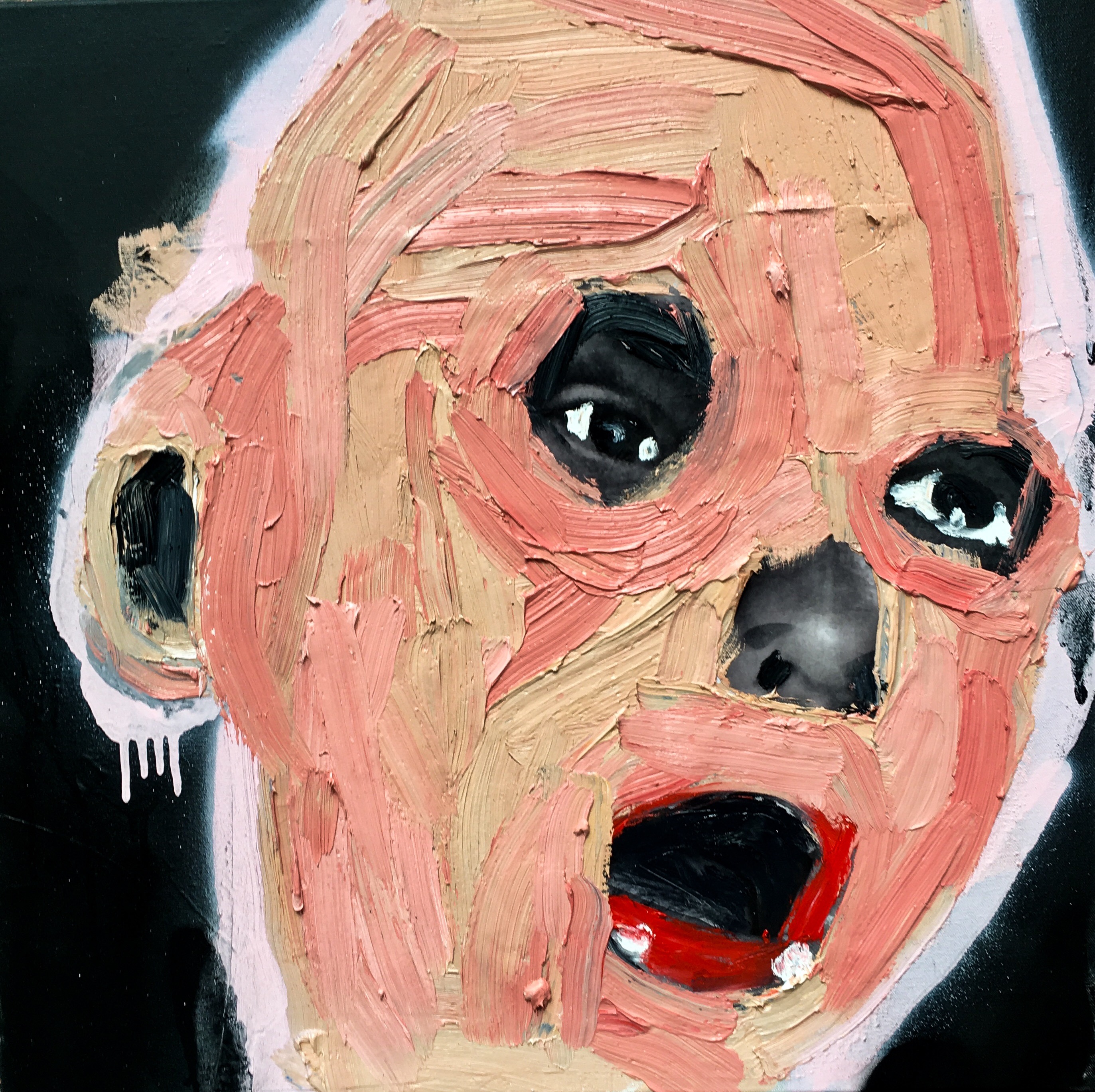 Categories Uncategorized Fading Facade Post author By jbrennanart Post date March 19, 2018 No Comments on Fading Facade “Fading Facade (mask no. 2)” 40×40” Oil, spray paint, collage on canvas 2018 AVAILABLE